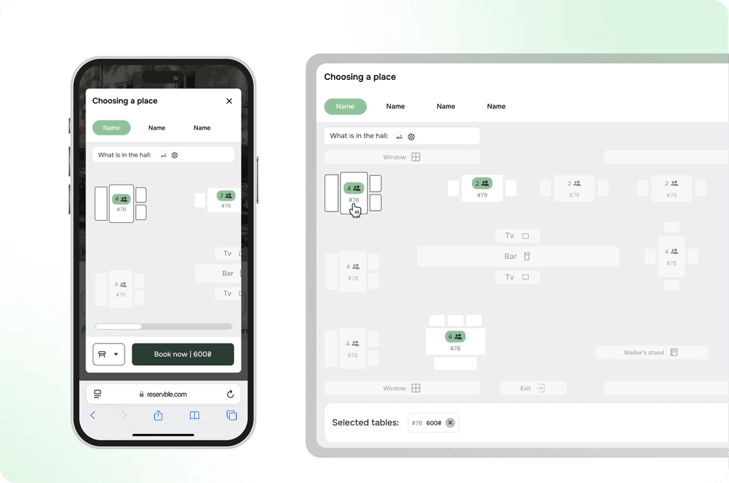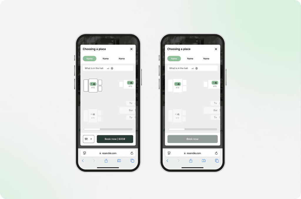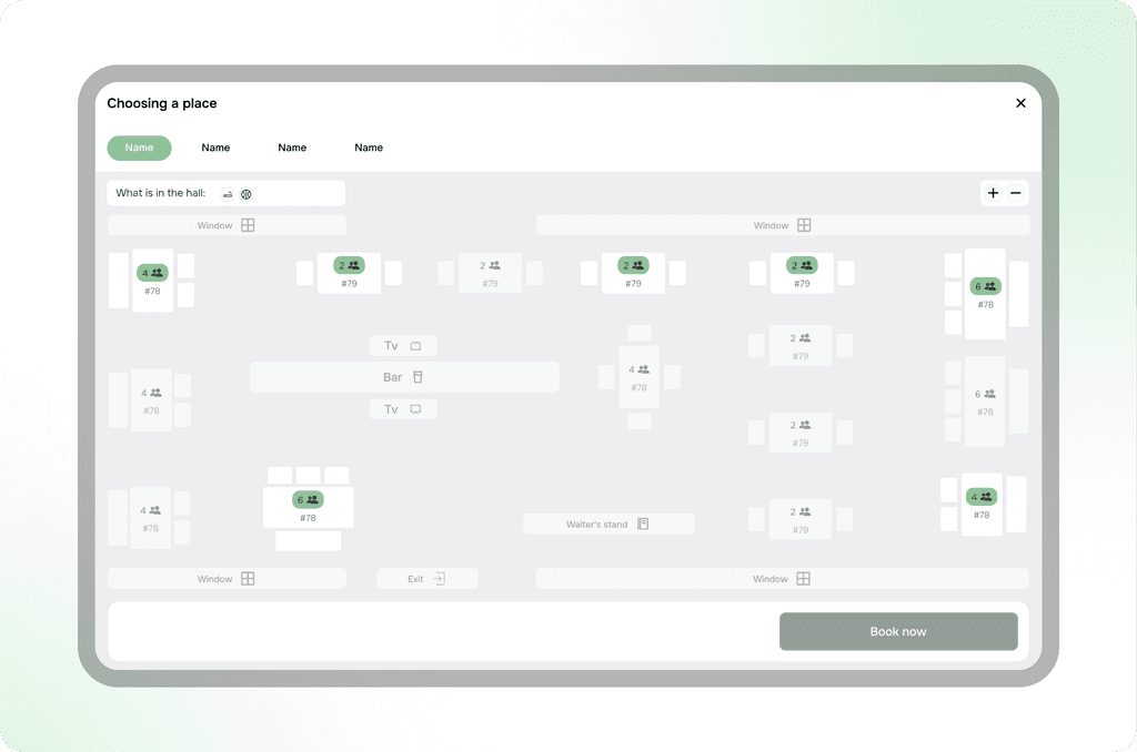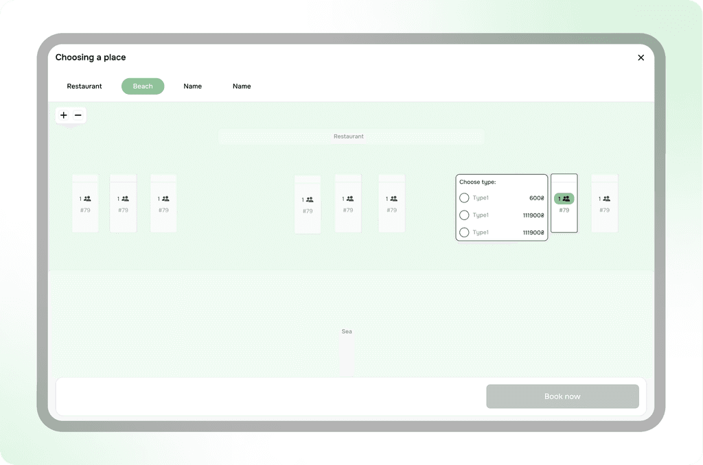 One of the key challenges was creating a universal solution that would allow the developed seating scheme to be used not only for table selection but also for other types of seating, such as lounge chairs or gazebos. This required taking into account various features of each of these objects, such as their location, functionality, number of seats, availability for booking, and other factors.