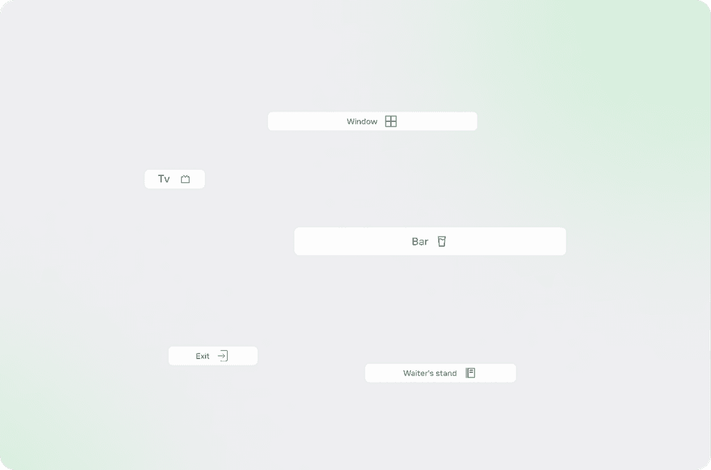 Therefore, a series of interface components was developed to ensure convenience and intuitiveness in navigation when selecting seats. These components include visual indicators that show users the location of important objects such as the bar counter, television, windows, doors, and other key areas.